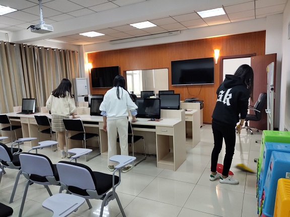 本次志愿服务是清理365best体育亚洲官网实验室。下午1:00,大家在经管实验室门前集合,由经管实验室负责老师为大家分配了任务,清扫了物流实验室、酒店模拟实验室等五个场所。
