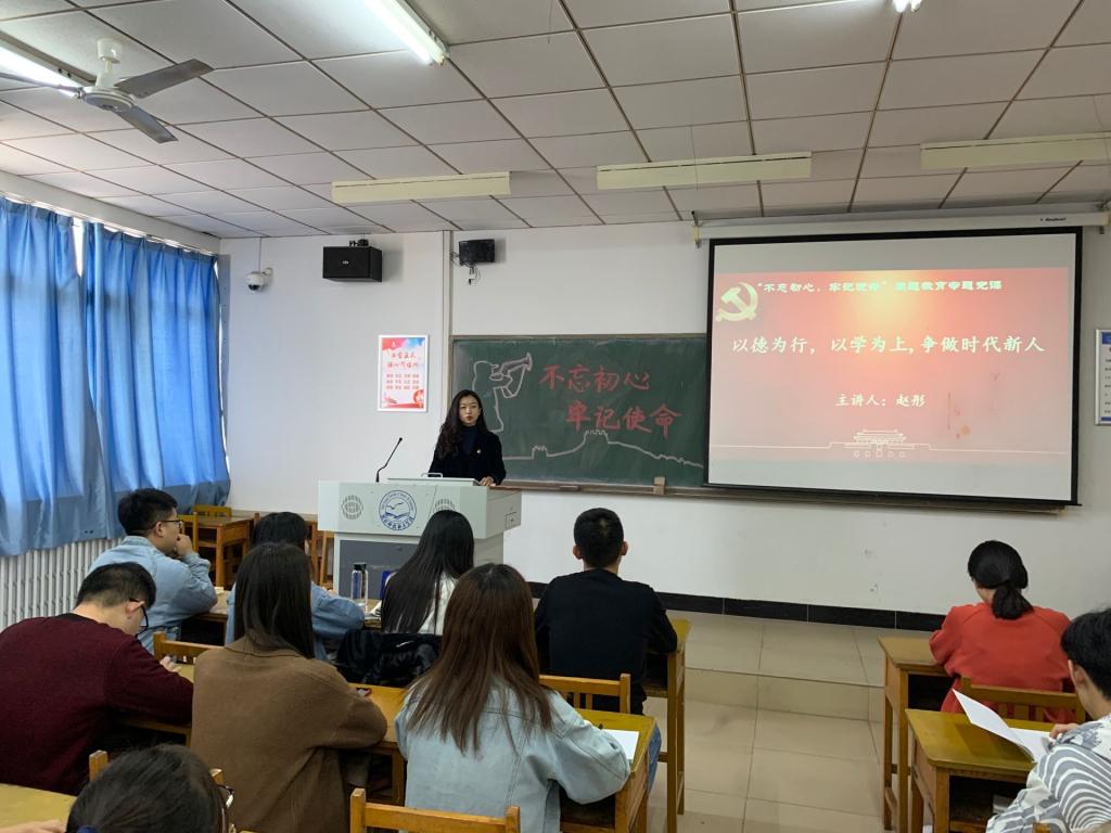 2019年10月31日,365best体育亚洲官网信息管理党支部书记为支部党员、积极分子讲授“不忘初心,牢记使命”专题党课。