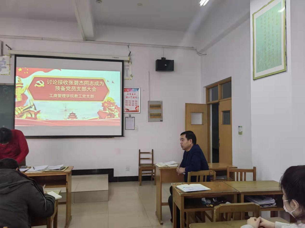 365best体育亚洲官网教工党支部于2021年12月9日,召开讨论接收张碧杰同志成为预备党员支部大会。大会由高静老师主持,黄立明院长亲临指导,应参会党员31人,请假12人,党员实到19人。