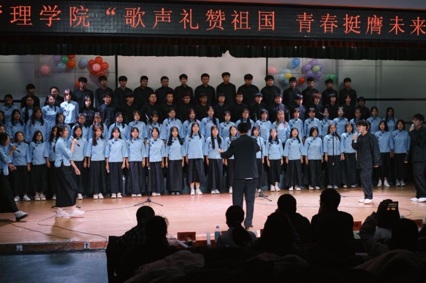 各参赛队伍围绕活动主题,精心挑选曲目,除参加规定曲目《科技师院人之歌》的比拼之外,各班级的自选曲目更是精彩纷呈,从激昂向上的红色经典,到温馨动人的民歌曲目,再到彰显时代精神的现代作品,每一曲都以其丰富的音乐语言和深情的演绎,展现出同学们积极向上、团结奋进的精神风貌,以及对祖国的赞美热爱和对美好青春的无限向往与不懈追求。现场精彩不断、高潮迭起!