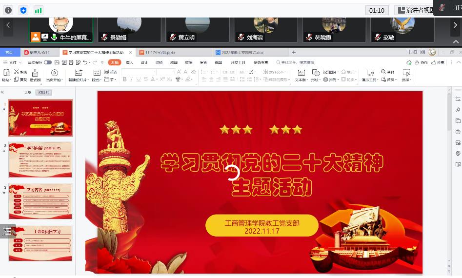 为深入推动习近平新时代中国特色社会主义思想和党的二十大精神入脑入心,迅速掀起学习宣传贯彻党的二十大精神的高潮,11月17日下午,365best体育亚洲官网教工党支部在腾讯会议举行了党的二十大精神主题学习活动。
