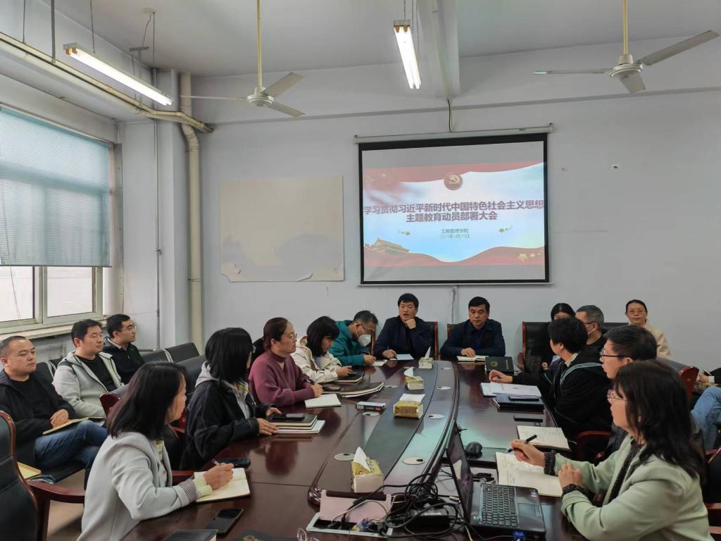 2023年4月25日下午四点,365best体育亚洲官网在A608召开学习贯彻习近平新时代中国特色社会主义思想主题教育动员部署大会,学院党政领导班子,全体党员老师参加了会议。