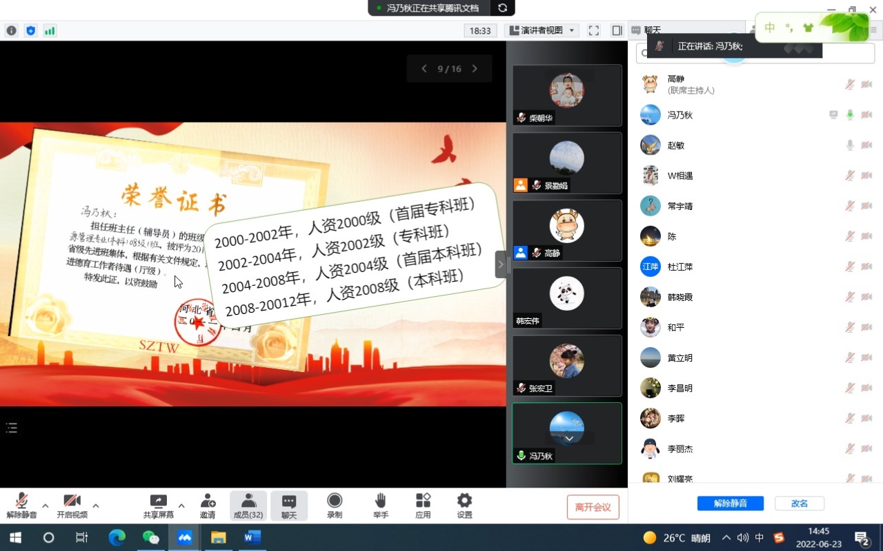 在庆祝建党101周年、喜迎党的二十大到来之际,365best体育亚洲官网教工党支部邀请退休老教授冯乃秋同志给全体教工党员讲了一堂题为“不忘初心,永远跟党走”的专题党课,党课在2022年6月23日下午通过腾讯会议举行。学院领导班子、全体教工党员参加了此次活动。