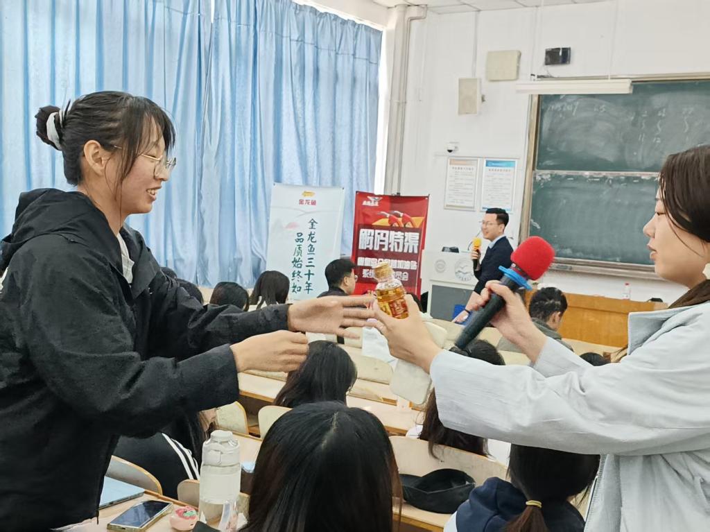 讲座伊始,徐扬以“毕业求职:选择当下还是考虑未来?”这一发人深省的话题切入,通过分享企业同事的真实案例,深度剖析短期就业与长远发展的辩证关系基于多年招聘经验,徐扬重点介绍了心理学家唐纳德·舒伯的“三叶草理论”,建议同学们:以兴趣为职业导航、用能力夯实发展基础、通过价值实现持续成长。通过多媒体展示,徐扬系统介绍了益海嘉里集团的发展历程、业务布局及企业文化,并详解食品营销有限公司的招聘需求。在持续80分钟的讲座中,设置了“问答有礼”等互动环节,同学们就求职技巧、职业发展路径等问题踊跃提问,现场互动热烈,掌声不断。
