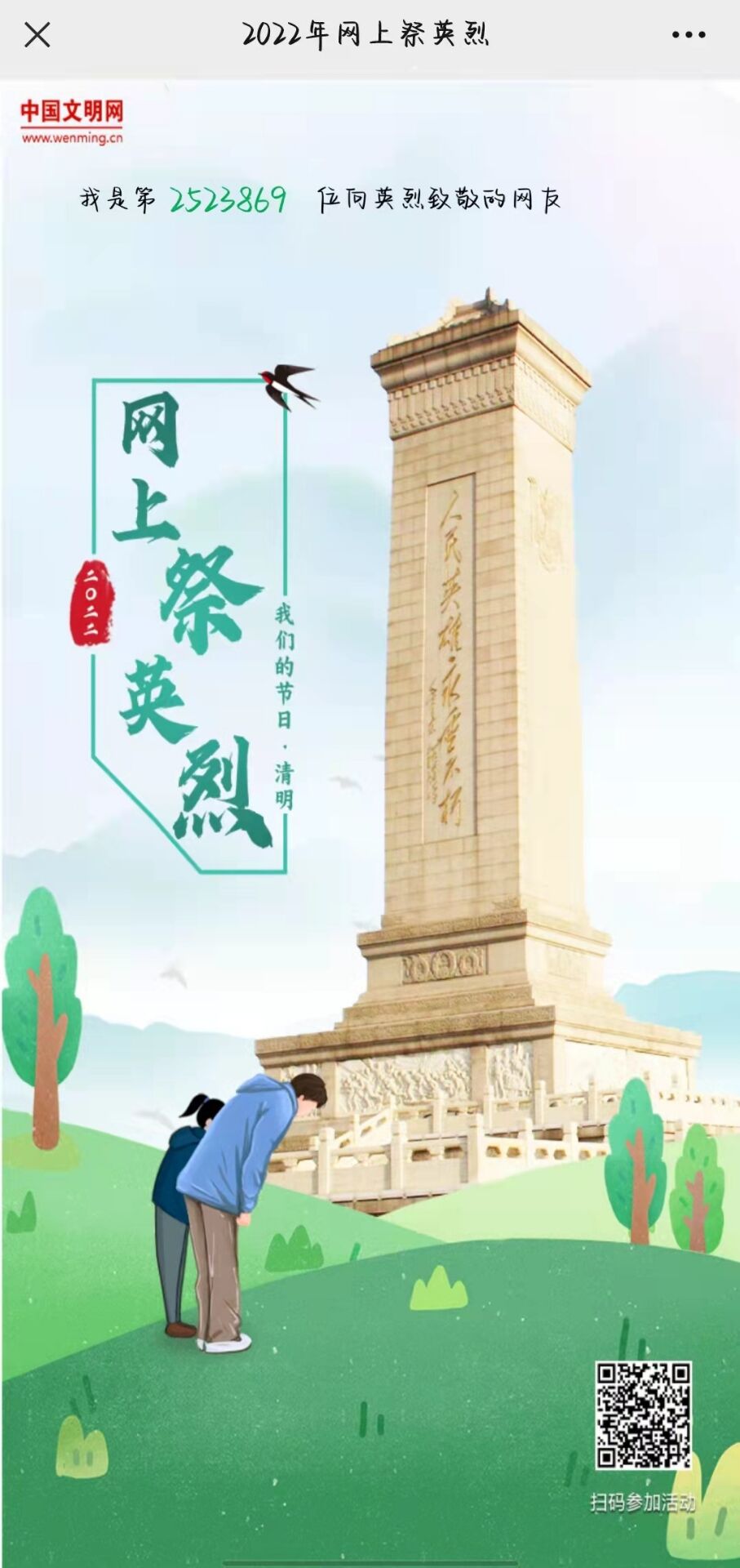 365best体育亚洲官网的青年志愿者们以自己最真挚的情感、最真切的方式积极开展网上祭扫,缅怀先辈烈士。同学们通过进入中华英烈网或者点击转发链接的方式进行网上祭扫活动,用鞠躬、鲜花、上香、写寄语留言等方式祭奠烈士。祭扫完成后,同学们将自己祭扫成功后生成的海报进行了转发,使更多青年铭记革命英雄。