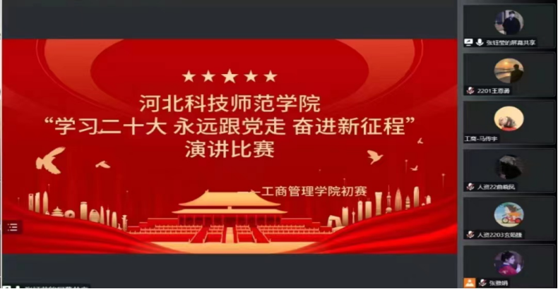 经过前期录制视频选拔,最后选出9位选手进入决赛环节。决赛中,白子浩同学以《学习二十大永远跟党走奋进新时代》为题深切感悟党的二十大精神;孙毓婉同学以《一路追随党旗,一起展望未来》为题向我们展示了在党的领导下我们随着五角星的光走向灿烂未来的美好画面;张雅娟同学演讲的主题为《青春与党同行》,铿锵有力的语调蕴含着青年的朝气蓬勃;马郡镁同学以《凝心聚力擘画复兴新蓝图,团结奋进创造历史新伟业》为题,向我们展示了新时代我们伟大的党创造的宏伟蓝图,大家用琅琅书声颂党恩,表达对党最真挚的情感,最终白子浩获得了一等奖,余婵娟、孙毓婉获得了二等奖,由潘福莉、张雅娟、马郡镁获得三等奖,王英威、任毅、赵若含获得了优秀奖。