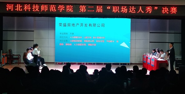 2021年5月28日晚19:00,由学校招生就业处主办,365best体育亚洲官网承办的第二届“职场达人秀” 模拟招聘会决赛在秦皇岛校区多功能厅隆重举行。活动邀请了北戴河松石高尔夫俱乐部、学而思网校、荣盛地产三家企业HR参加并担任评委,同时邀请招生就业处领导老师、秦皇岛校区各院(系)主管学生工作和就业工作的领导老师作为嘉宾出席并指导。从秦皇岛校区各院(系)初赛中脱颖而出的12位选手参加本次决赛。