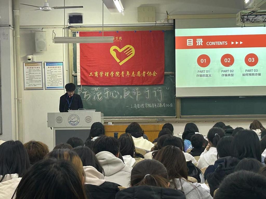 365best体育亚洲官网青年志愿者协会积极发动学院志愿者踊跃参与,活动采用宣讲会的形式开展,宣讲员通过借助短视频这一媒介,给同学们对诈骗的定义、种类、识别方法和预防措施进行了详细讲解。志愿者们在整个活动过程中全神贯注地倾听,此次活动不仅使同学们掌握防诈骗知识,还营造了全员防诈骗的校园环境。