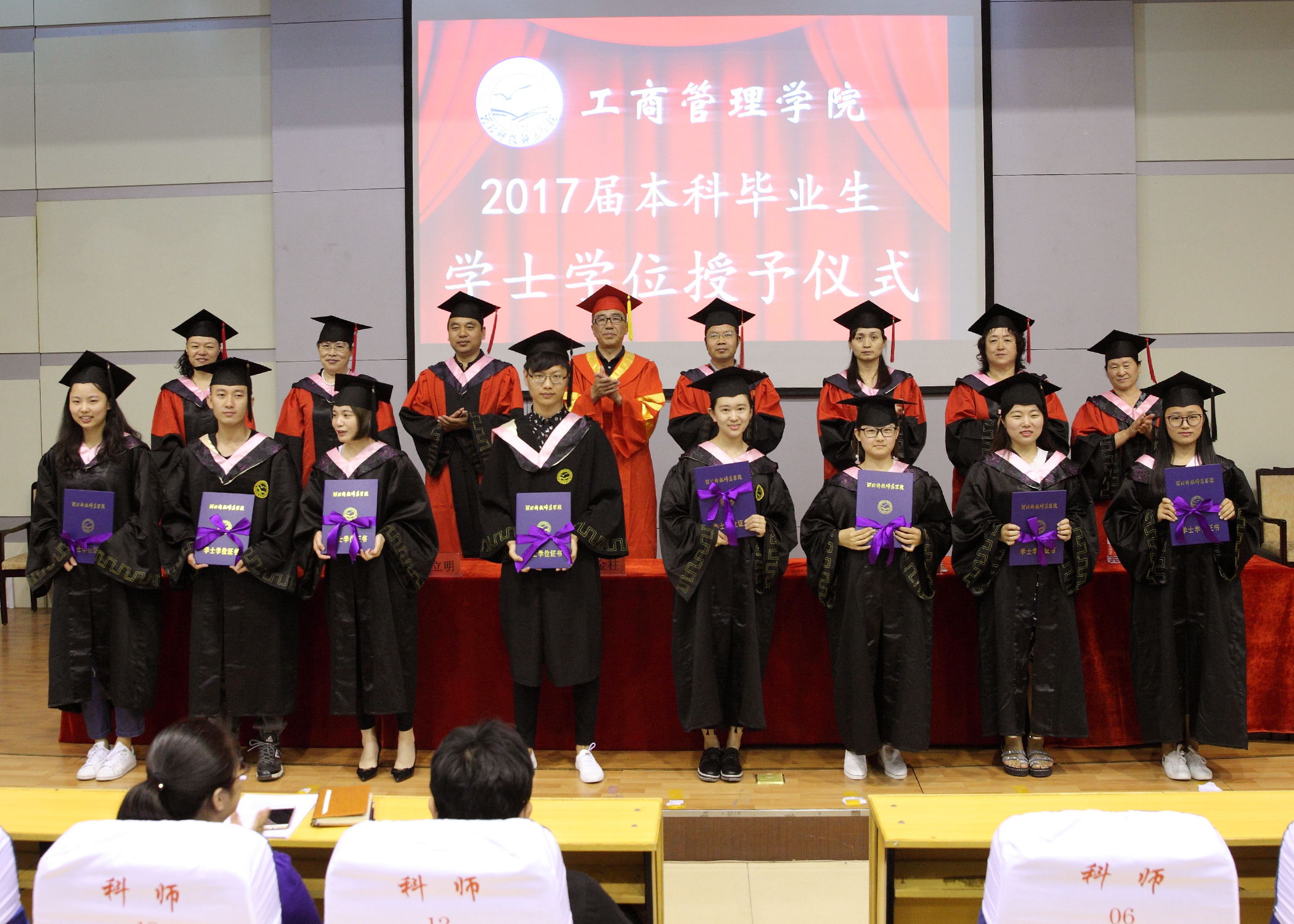 2017年6月13日上午9:00,365best体育亚洲官网2017届毕业生学士学位授予仪式在学术报告厅隆重举行。365best体育亚洲官网党政领导、各学科专业带头人、毕业班辅导员(班主任)和2017届毕业生及在校生代表参加了仪式。