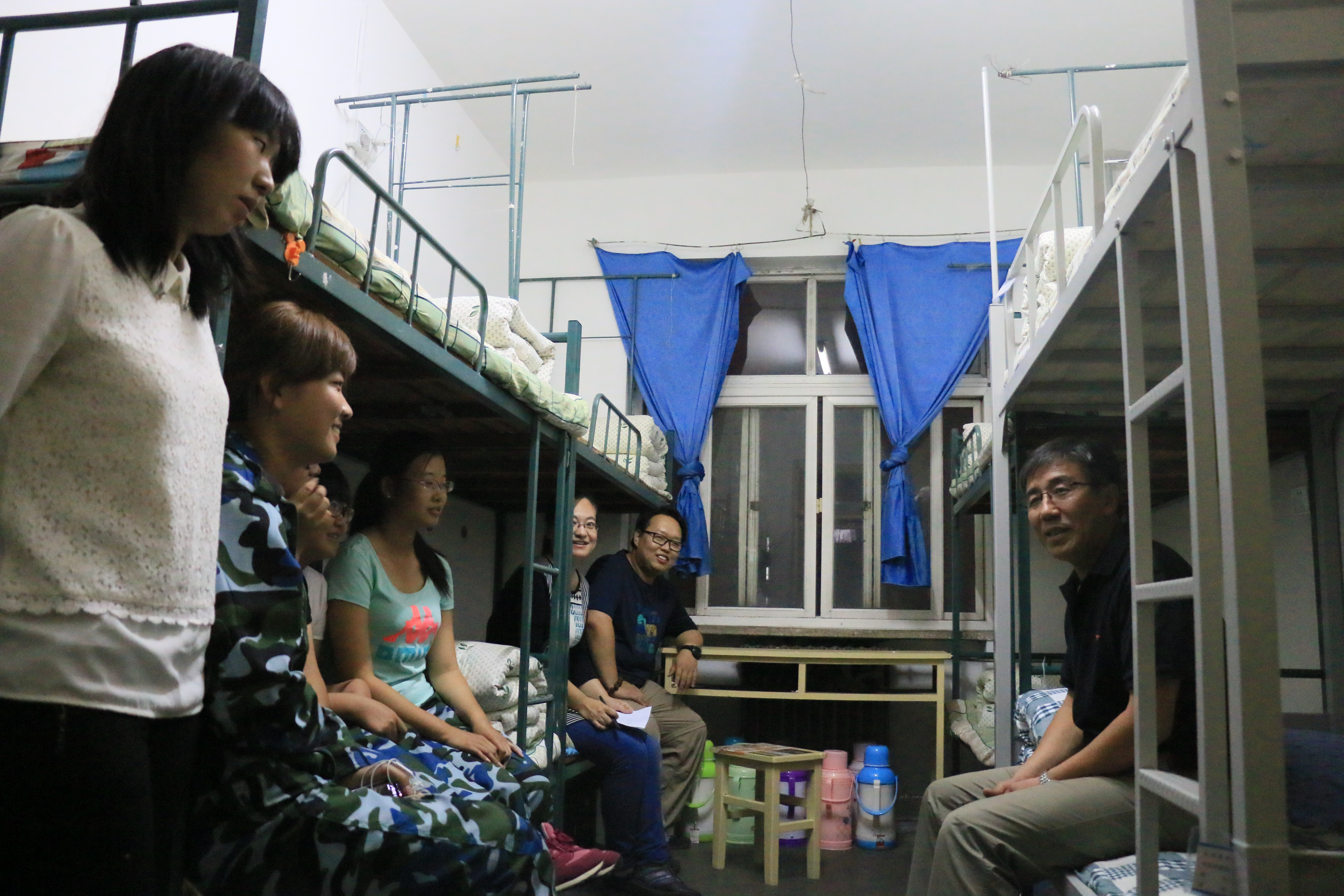 9月24日晚上7点,365best体育亚洲官网党委书记刘恩峰、院长侯金柱、党委副书记副院长李强华、副院长黄立明在全体辅导员老师的陪同下到学生宿舍一一看望慰问2015级新生,向新生带去中秋祝愿。
