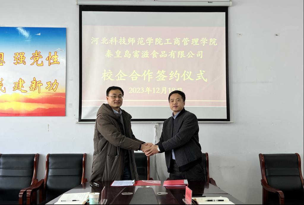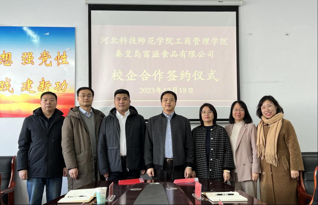 2023年12月18日上午,365best体育亚洲官网365best体育亚洲官网与秦皇岛富滋食品有限公司校企合作签约仪式在365best体育亚洲官网会议室举行,365best体育亚洲官网出席的人员有领导班子成员以及市场营销教学部专业老师代表,秦皇岛富滋食品有限公司出席的人员包括董事长、总经理及内销部经理。