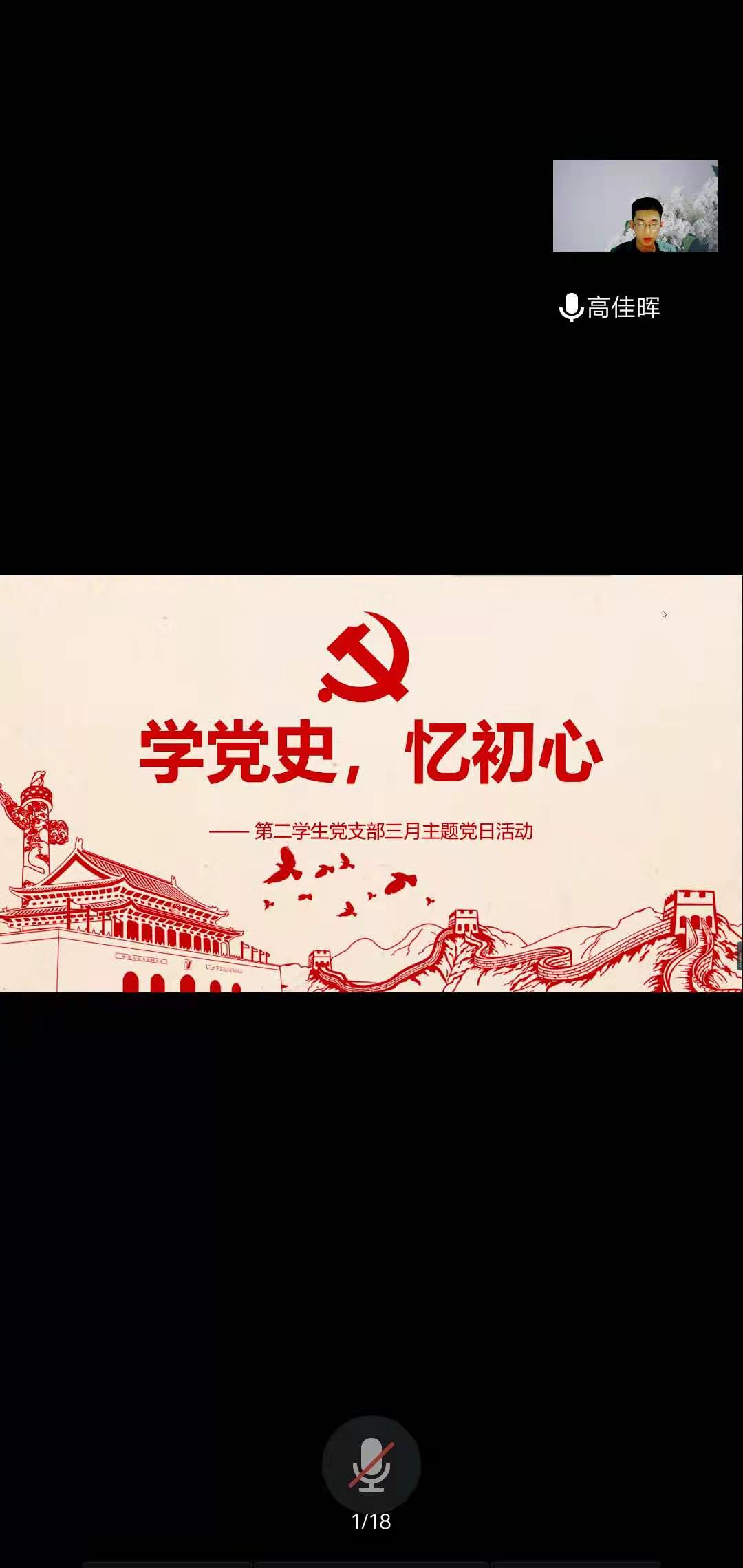 2021年3月28日晚7点30分,365best体育亚洲官网第二学生党支部在线上平台开展了“学党史、忆初心”主题党日活动,全体党员到场参加。活动由支部书记主持,首先给全体党员讲解了党史的发展脉络,之后,支部成员通过观看视频、党史故事分享、共唱爱国歌曲、分组讨论忆初心等形式结合展开,通过本次活动,支部党员们对习近平新时代中国特色社会主义思想和中国共产党的百年光辉历程有了更深层次的了解,思想进一步得到洗礼,更坚定了理想信念,党员们纷纷表示,要自觉做共产主义远大理想和中国特色社会主义共同理想的坚定信仰者和忠诚实践者,肩负起时代使命,在全面建设社会主义现代化的新征程上挥洒汗水、贡献青春力量。