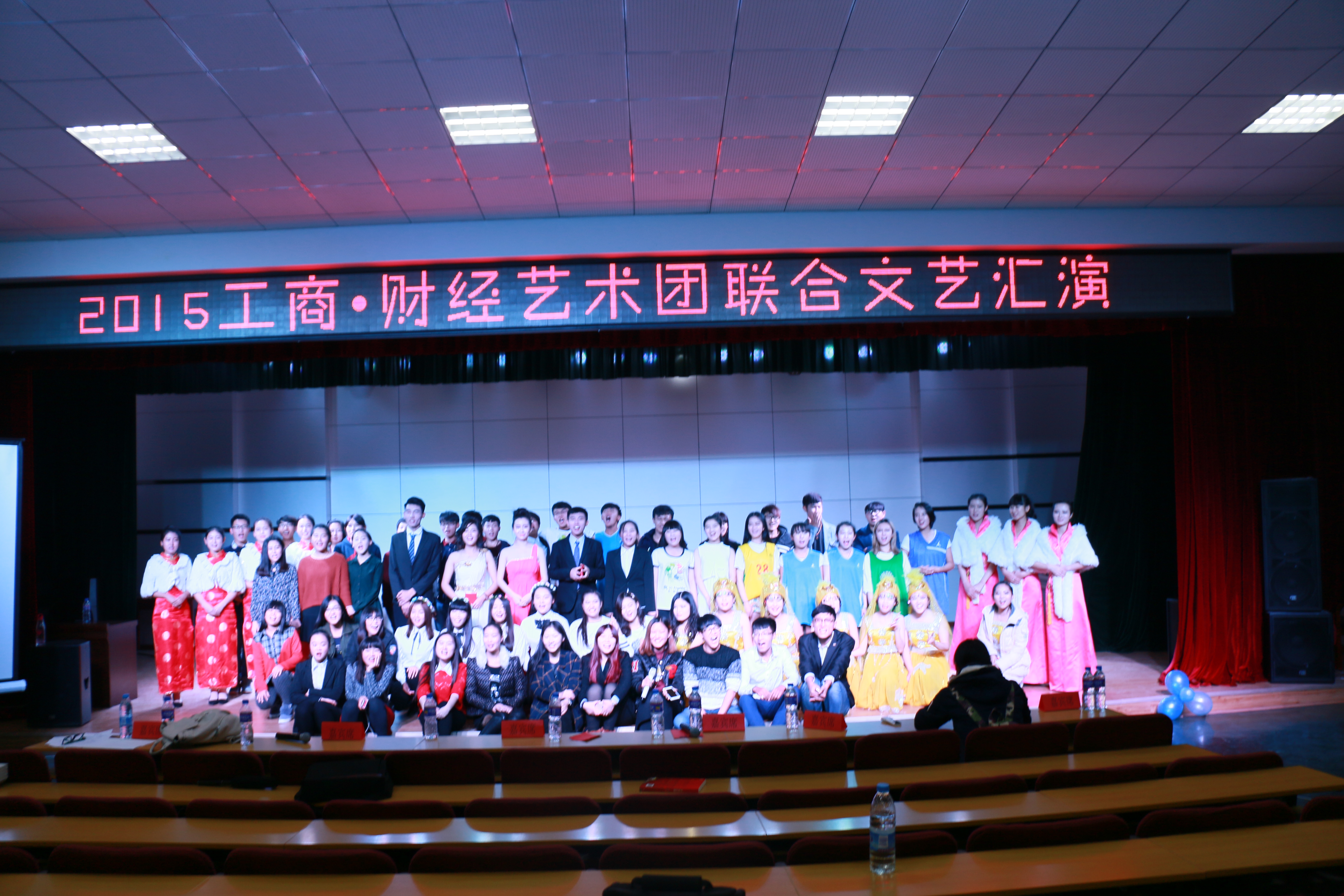 2015年11月10日晚7:00在多功能厅举行工商·财经艺术团联合文艺汇演,出席本次汇演的嘉宾有侯金柱教授,韩晓霞、胡建生老师以及各二级学院学生会主席 。