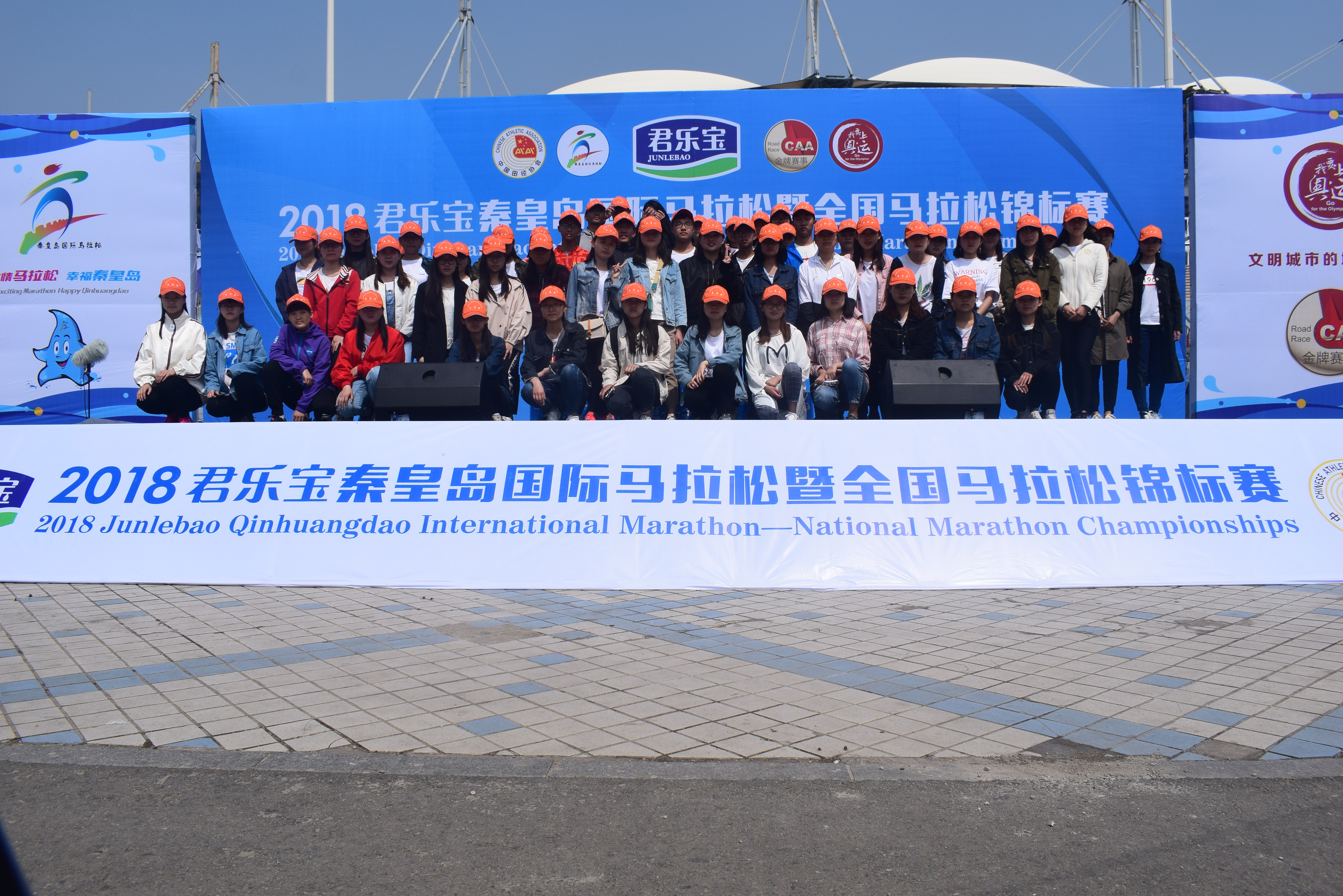 2018年5月13日早8:00,秦皇岛市举办秦皇岛国际马拉松暨全国马拉松锦标赛。365best体育亚洲官网由党委副书记副院长李强华带队,学工办主任韩晓霞、专职辅导员赵卓、徐景升、班主任王涛四位老师带领200名马拉松志愿者对秦皇岛马拉松比赛进行赛道安保志愿服务。